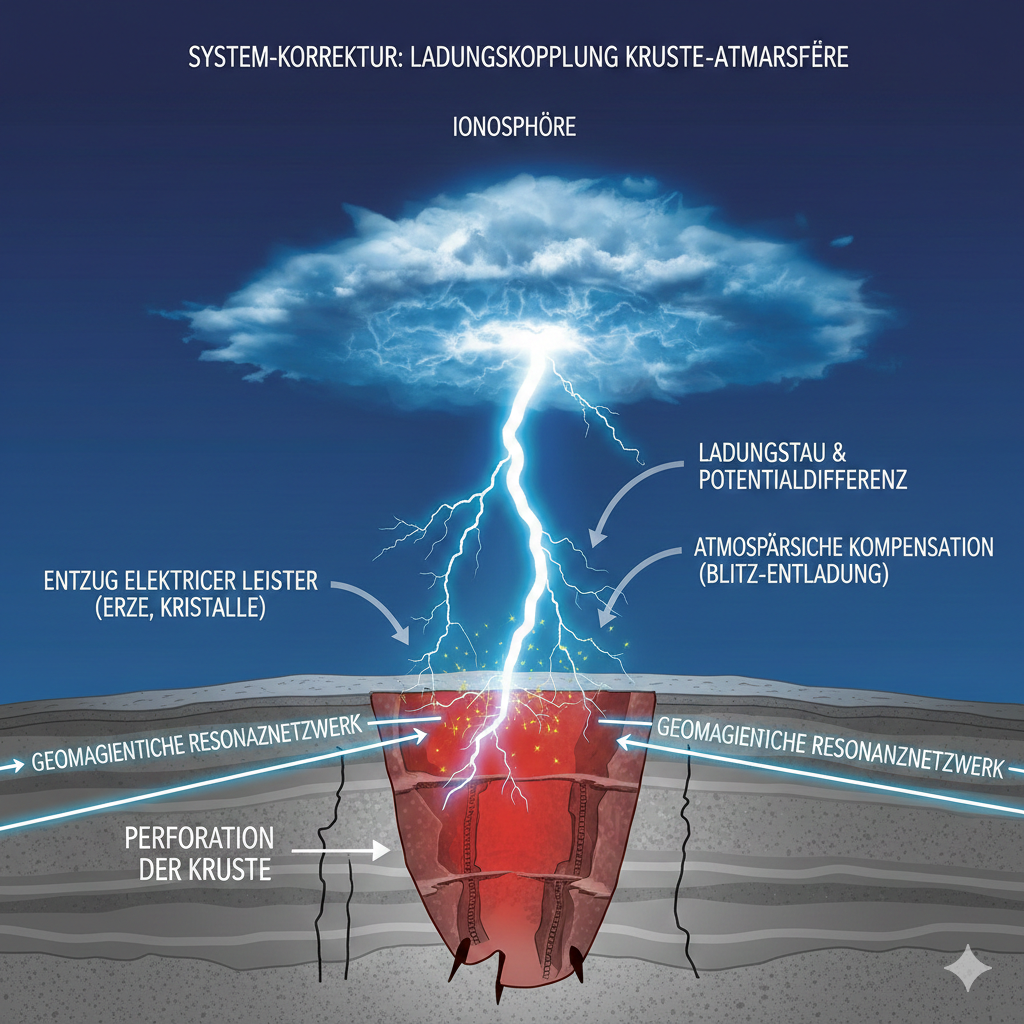 Die industrielle Perforation der Erdkruste – insbesondere der Abbau dieser leitfähigen Strukturen – führt zu einer drastischen Veränderung der elektrischen Impedanz des Gesamtsystems. Wenn die „Erdungskabel“ der Erde entfernt werden, verliert der Planet seine Fähigkeit, internen elektrischen Überdruck zu puffern.